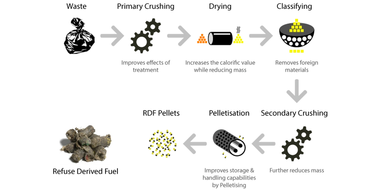 Refuse-derived fuel (RDF) is a fuel produced by shredding and drying out every day rubbish (MSW).